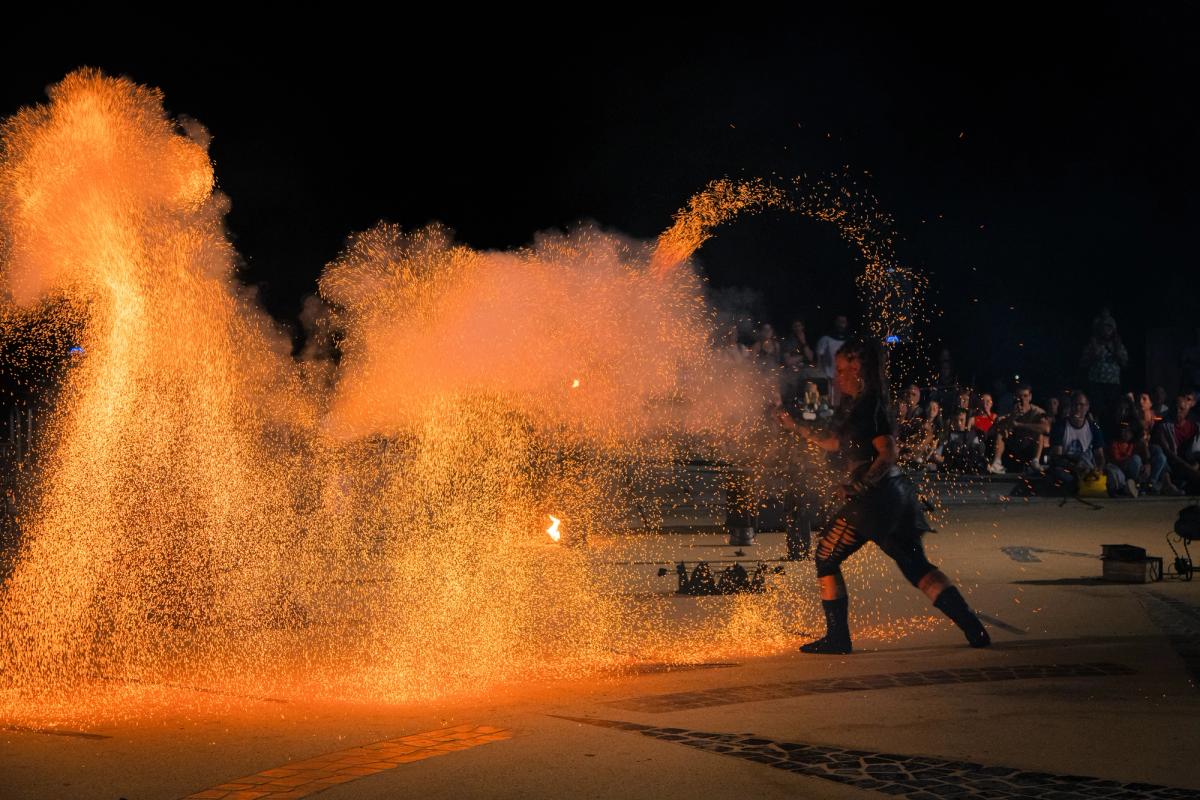 Spectacle d'extérieur, adapté tout public (y compris non francophone et malententant) Inclut l'usage d'une salve de feux d'artifice non soumise à autorisation préfectorale